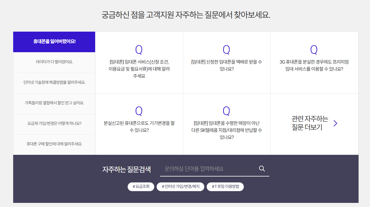 - 간단한 정보 조회, 요금제 변경, 부가서비스 가입은 온라인이 더 빠름