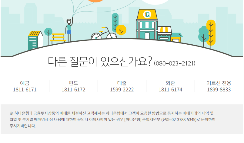 하나은행은 금융 서비스의 다양성만큼이나, 업무별 전문 상담센터도 분리 운영하고 있습니다.