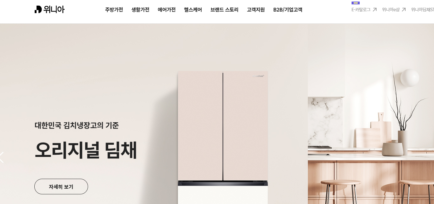 위니아, 딤채, 딤채쿡, 클라쎄 브랜드와 주방가전, 생활가전, 에어가전 등 다양한 제품 정보 제공