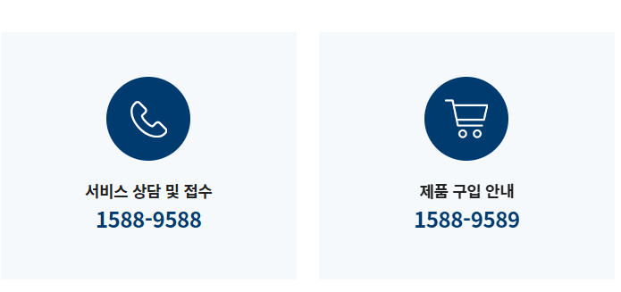 - 이전 설치, 세척 서비스 등은 콜센터를 통해 별도로 접수해야 합니다.