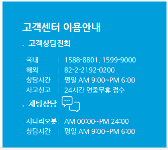- 대표번호(1599-9000 또는 1588-8801)로 전화