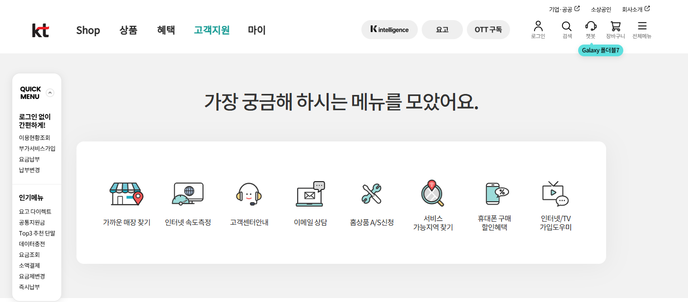 - KT 홈페이지: kt.com에서 '챗봇'을 누른 후 상담사와 톡하기 선택
