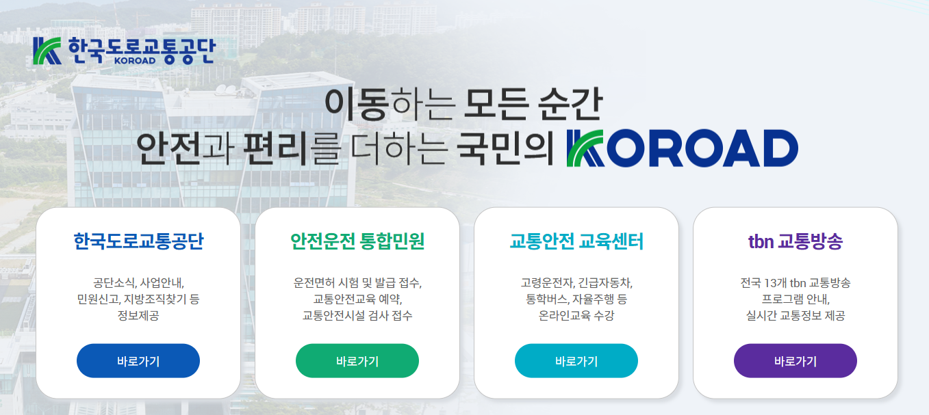 도로교통공단 홈페이지에서 제공하는 인기 서비스들: