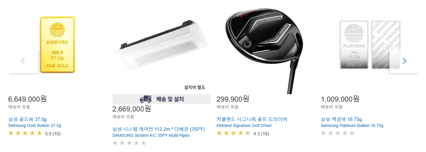 가전제품, 유아용품, 대형 가구, 생활용품 등 오프라인보다 더 많은 카테고리를 포함하고 있어, 카트에 담는 재미가 쏠쏠합니다.