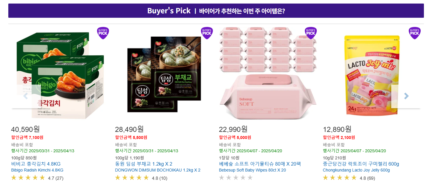 - 바이어 추천 상품