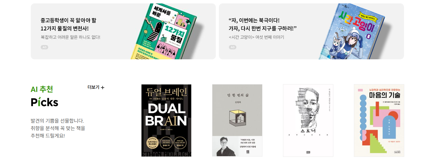 - 카테고리 또는 테마별 추천 도서 탐색 가능