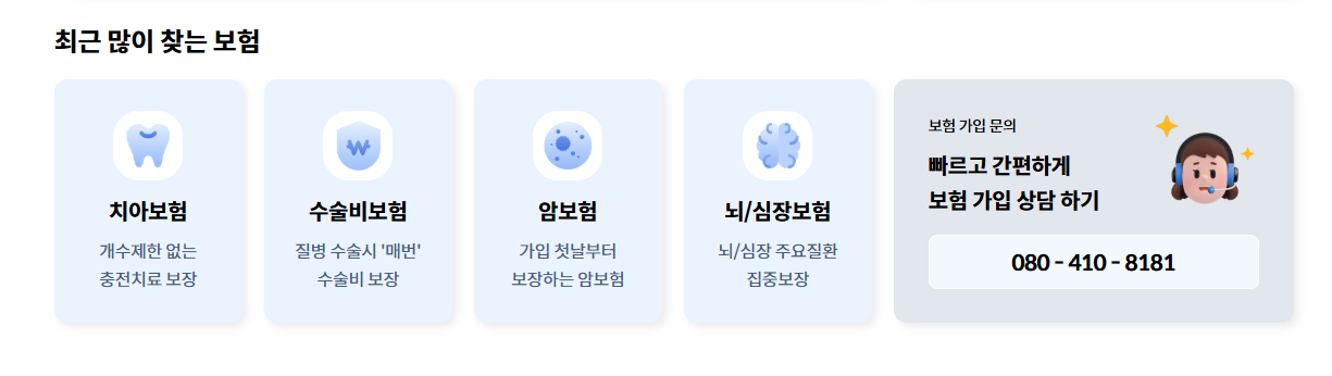 - 생명보험, 실손의료비, 치아보험, 유병자 보험 등 다양한 상품 제공