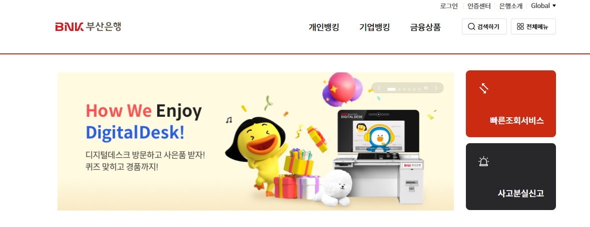 자주 접속한다면 부산은행 인터넷뱅킹 홈페이지를 즐겨찾기에 등록해두는 것이 좋습니다.