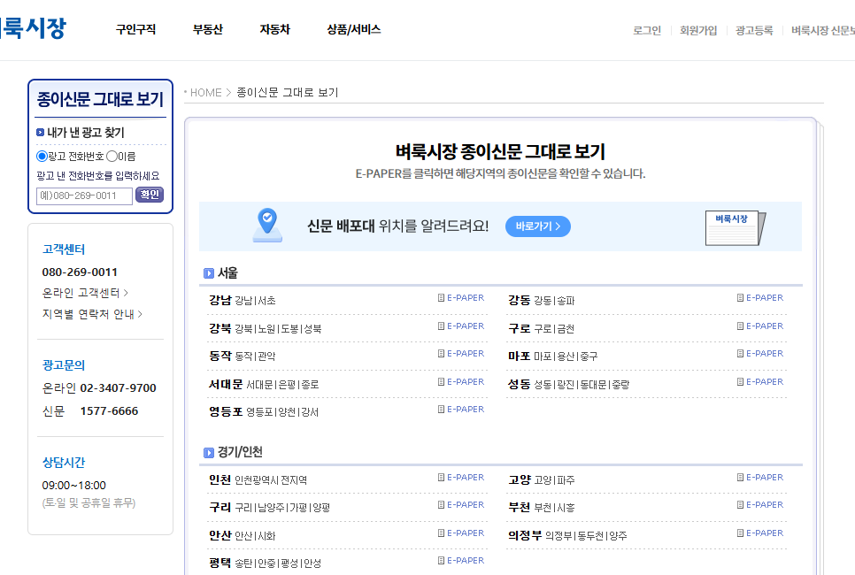 벼룩시장 종이신문 그대로 보기