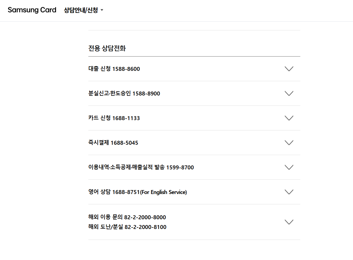 | 해외 분실/도난 신고 | +82-2-2000-8100 |