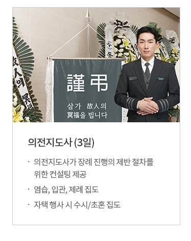 - 의전 인력: 지도사 1명, 입관보조 1명, 예절관리사 1명, 의전관리사 2명